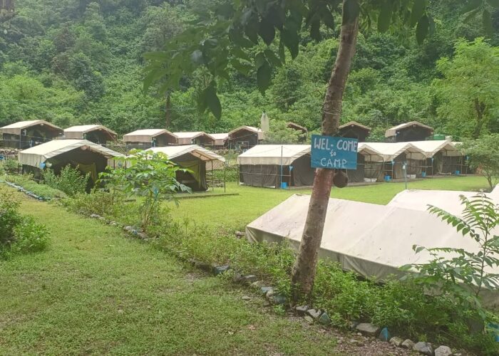 Usual check-in time is 12 noon onward. You will be received with warm welcome by our staff post a small hike of 15 min (700 Meter) from road to camp. And after that you will be given a short briefing by our camp Manager on all the details about do’s and don’ts during your camping stay. After that check into your tents Lunch will be served in the dining area. After your lunch, you can take a break, relax at the campsite or trek to waterfall. In the Evening DJ, Bonfire will be there that is a fun for everyone, snacks will be served at the time of bonfire and buffet dinner in the dining area, overnight stay at camp.