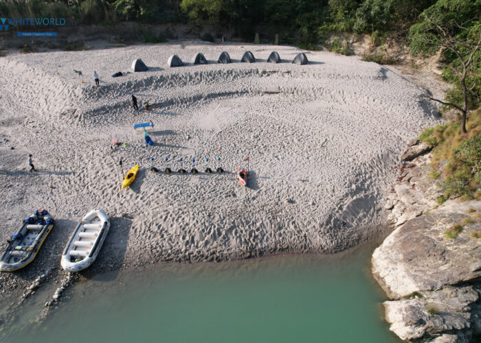The day begins with healthy breakfast, post which we will have a discussion and briefing session on the plans for the day ahead. On this day we will go through a few small rapids followed by nice scenic beauty. During the entire rafting period on this day, We will visit to hidden waterfall in the valley after lunch we will cover 28 km km rafting to reach Kaudiyala, where we will pitch our camps for the night.  today is great day for rafting down, we play some games fun gems on the boat & reach to the camp & Its time to play volleyball on the beach. Camp at Kaudiyala.