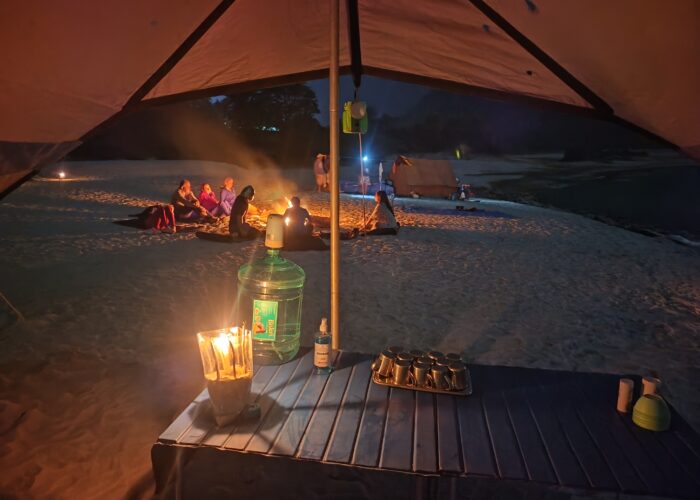The day begins with a morning exercise session and a healthy breakfast, post which we will have a discussion and briefing session on the plans for the day ahead. On this day we will go through a few small rapids followed by nice scenic beauty. A relaxed day with few good rapids like Bagwan rock, Bagwanwave, malegav, Three brother, & a day for swimming, body surfing, relaxing and spotting wildlife. Raft 5 – 6 hour to reach camp at Byass Ghat setup your tents check in after Its time to play Beach Volley ball & fresh bee in the evening enjoy camp fire with your loved ones overnight camping on the beach. Have a great sleep in the nature.