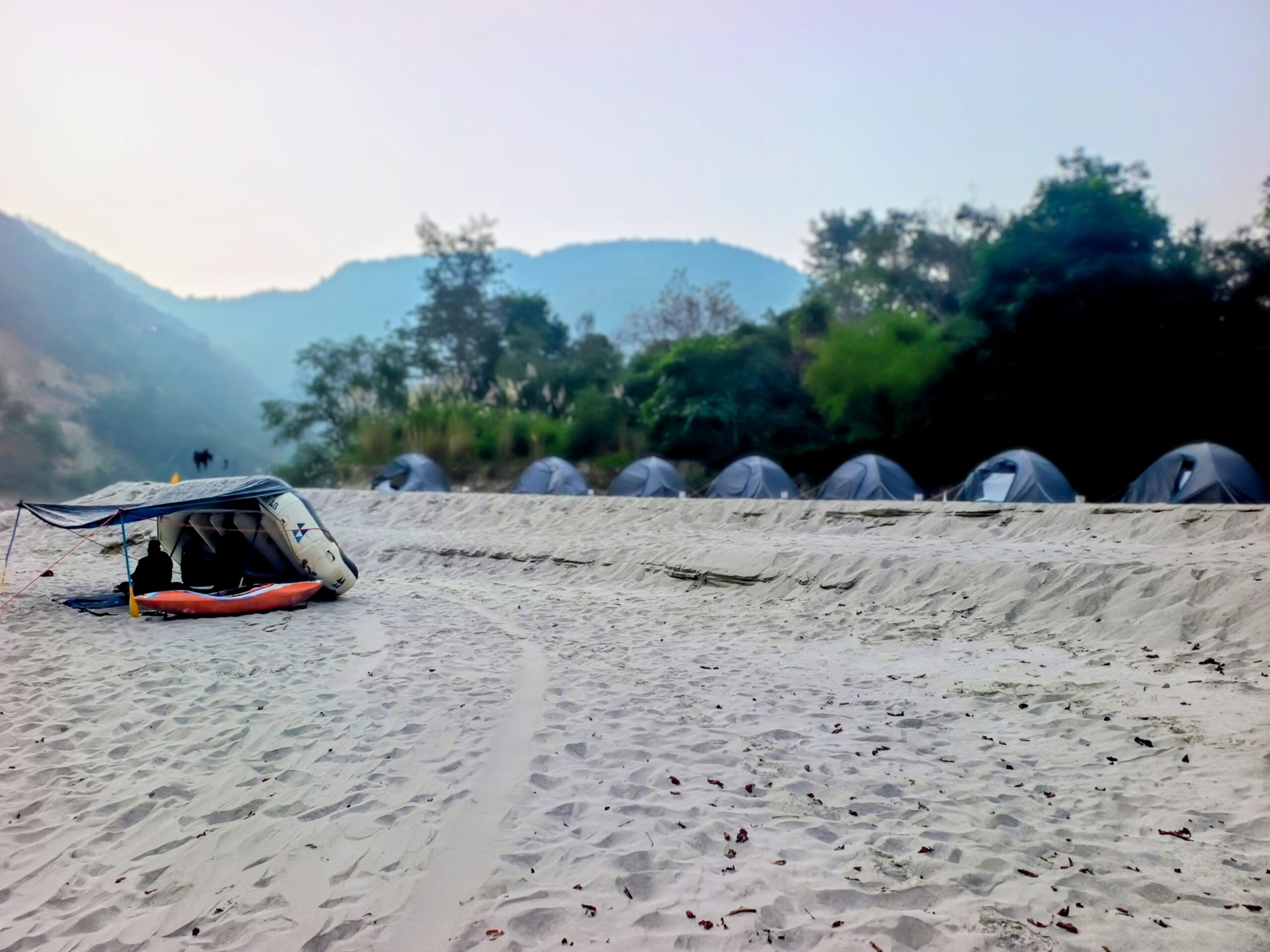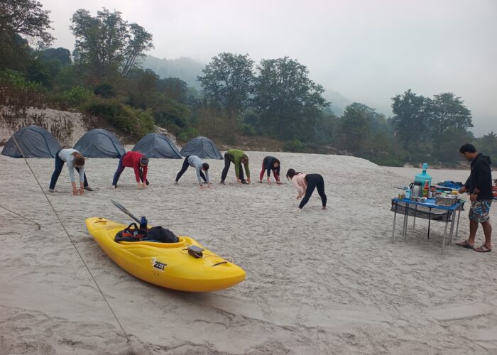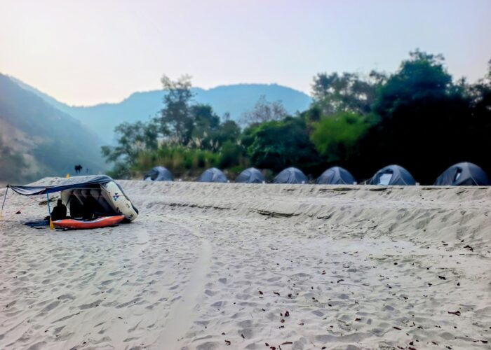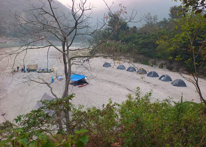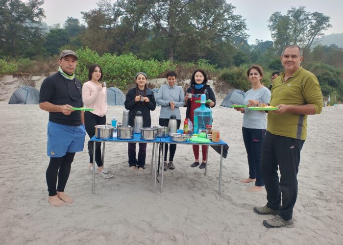 After breakfast 8:00 AM pack up & get ready The day begins with small rapids followed by nice and scenic beauty of Ganga river. We covers today 22 Km rafting to reach to Kaudiyala beach camp. This is really nice and easy day for rafters during rafting down we play games on the boat and splash with each other. Jump off from the rock & Body surfing on the river & exploring the best hidden waterfall & climb up to the great view point of the trip after lunch we will continued paddle to reach at camp location & help to setup your camp check in and Its time to play activities like Beach volleyball & Frisbee with team enjoy the campfire in the evening with your gang. overnight stay at beach camp by the river & a great sleep.