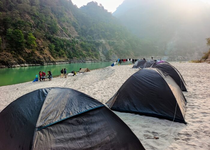 We drive from Lohajung to devprayag Meet the trip leader at Devprayag. Here you get the overview of the river and trip leader will let you explain about river features and give you safety brief about river rafting, and safety kayak. Rafting begins after all the preparation. A relaxed day with few rapids a day for swimming, body surfing, relaxing and spotting wildlife. Raft 2 and half hour to reach camp at Byass Ghat Camp overnight on the beach.