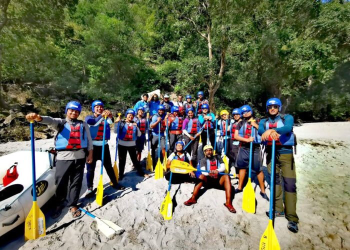 Wake up 7:00 AM in the beautiful beaches tea will be served on the table after breakfast 8:00 AM get change pack your tent start loading with your team The day begins with small rapids followed by nice and scenic beauty. Covers 28 kms to reach to Kaudiyala. & during rafting we play games on the boat. This is day to get refresh for the next big day. Its about 4 hours on mild whitewater, a good time to try your hand at some kayaking, body surfing, We stop at Kaudiyala for a waterfall visit. Lunch on a nice beach. Overnight at beach camp Kaudiyala.