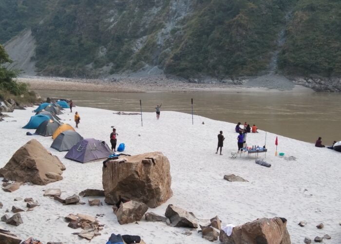 After breakfast Today we raft until Gauchar. Get ready for another exciting day on the river with plenty of grade 3/4 rapids. We raft pass the confluence of Pindar at Karanprayag. The Pindar River brings in more volume, adding punch to rapids to follow. We camp or stay in hotel & settle in to star gaze around the bonfire and get a good night’s sleep.
